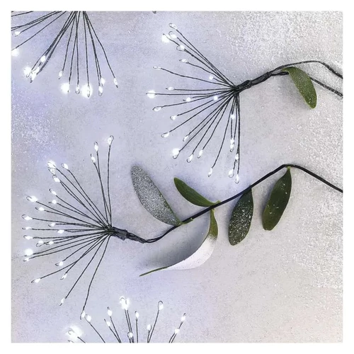 A NANO sorozatból származó karácsonyi LED fényfürtök elegáns kiegészítők, amelyek megbízható segítőtársak lesznek nem csak a karácsonyi dekorációk létrehozásában. A fényfürt úgy néz ki, mint egy virágzó pitypang, és a finom, ultravékony drótnak köszönhetően a fényrészek gyönyörűen kiemelkednek. Így a fa szokatlanul szépen fog kinézni, mert a fényfüzérek tökéletesen megvilágítják. Kizárólag beltéri használatra készült (IP20) és időzítő funkcióval rendelkezik, amely közvetlenül a tápegységbe van beépítve. Aktiváláskor a lánc 6 órán át világít, majd kialszik, és 18 óra elteltével ismét világít.