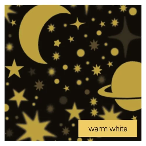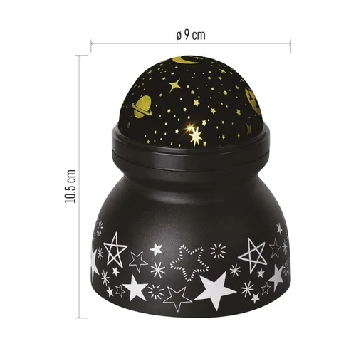 Létezik olyan dekoráció, amit a gyerekek szó szerint imádni fognak? Az biztos, hogy ez egy belső használatra tervezett játékos kivetítő, amely csillagok és bolygók mozgó motívumait meleg fehér színben vetíti ki a falra, mennyezetre vagy bútorra. A kivetítő AAA elemekkel vagy USB adapterrel működik. Kényeztesse gyermekeit egy gondtalan elalvással, miközben a megnyugtató csillagos égboltot nézik.