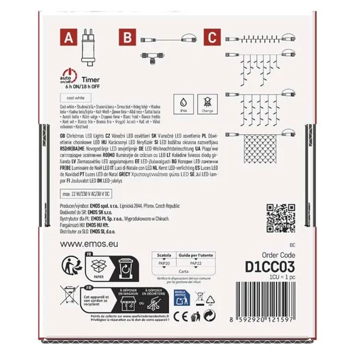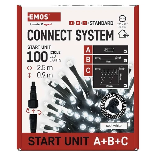 EMOS CNT Kezdő készlet – jégcsapok 2,5m 100 LED IP44 12W, hideg fehér, időzítővel