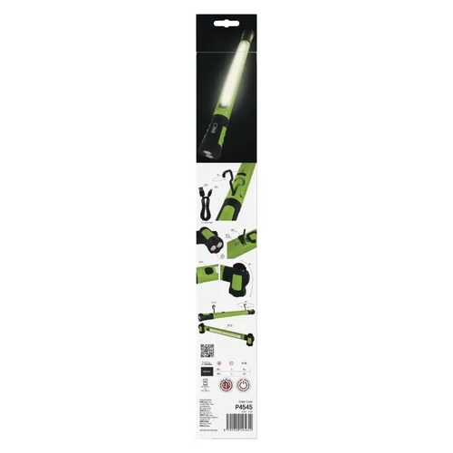 Tápellátás: beépített Li-Ion Akkumulátor típusa: 2600 mAh/7,4 V Max. világítási távolság: 40 m Maximális fényárama: 1 000 lm Elem a csomag része: igen Tölthető: igen Fókusz: nem Vízálló: igen (IP43) Anyag: ABS műanyag Világítási idő: 2–6 óra Üzemidő részletezés: COB LED 100 % – 2 óra, COB LED 40 % – 6 óra Feltöltési idő: 5 óra Ütésállóság: igen Szín: zöld-fekete Fényáram: COB LED 100 % – 1 000 lm, COB LED 40 % – 400 lm Fényforrás: COB LED Világítási távolság: COB LED 100 % – 40 m, COB LED 40 % – 25 m Világítási üzemmódok száma: 2 Töltőcsatlakozó típusa: USB-C Az akkumulátor állapotának LED-es jelzése: igen Üzemmódok: COB LED 100 %, COB LED 40 % A töltés LED jelzése: igen Tartozékok: USB kábel Speciális funkciók: gyors kikapcsolás funkció, akkumulátorvédelmi funkció Jellemzők: 2× forgatható fogantyú, 2× kampó, 4× mágnes Súly: 490 g Garancia: 2 év Méretek: 50 × 46 × 500 mm